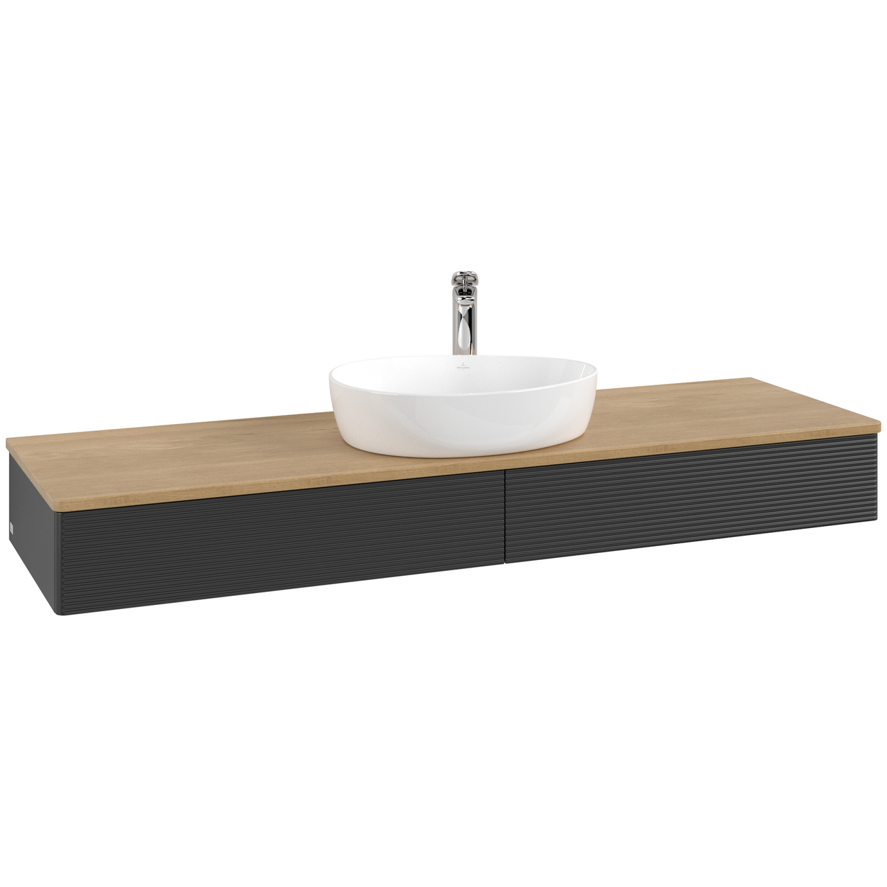 V&B ANTAO SERVANTSKAP 2 SKUFFER RILLET 1600X190X500 M/KRANHULL MATT SORT/EIK