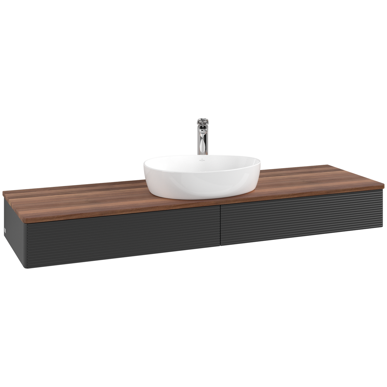 V&b antao servantskap 2 skuffer rillet 1600x190x500 m/kranhull matt sort/valnøtt