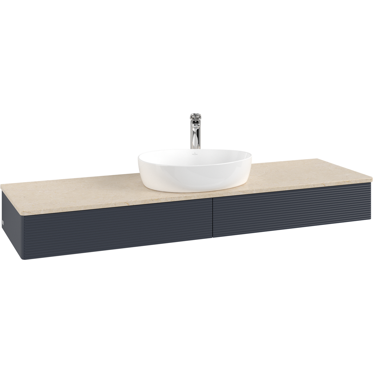 V&b antao servantskap 2 skuffer rillet 1600x190x500 m/kranhull m/lys blå/créme