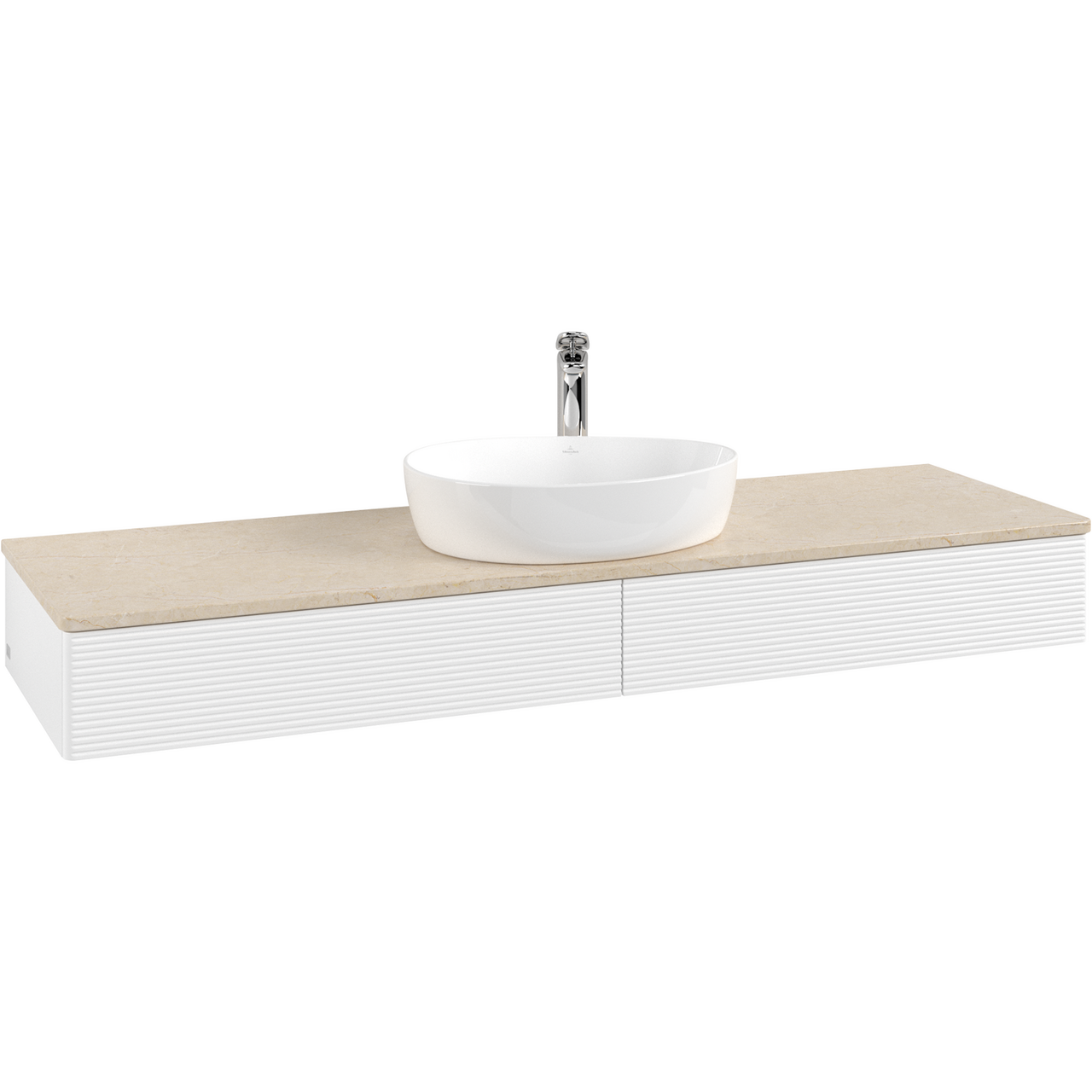 V&b antao servantskap 2 skuffer rillet 1600x190x500 m/kranhull m/lys matt hvit/créme