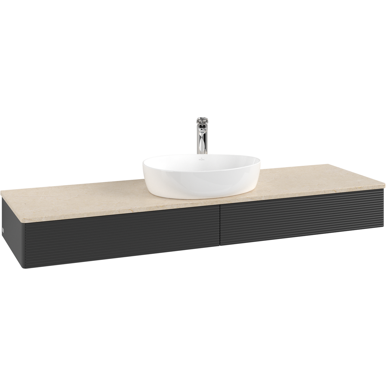 V&B ANTAO SERVANTSKAP 2 SKUFFER RILLET 1600X190X500 M/KRANHULL M/LYS MATT SORT/CRÉME