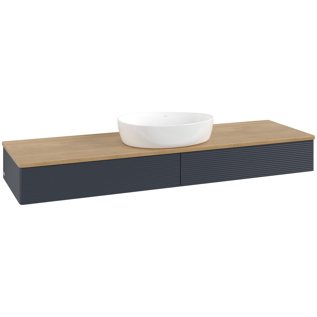 V&b antao servantskap 2 skuffer rillet 1600x190x500 u/kranhull blå/eik