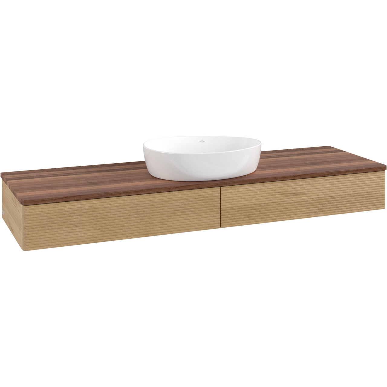 V&b antao servantskap 2 skuffer rillet 1600x190x500 u/kranhull m/lys eik/valnøtt