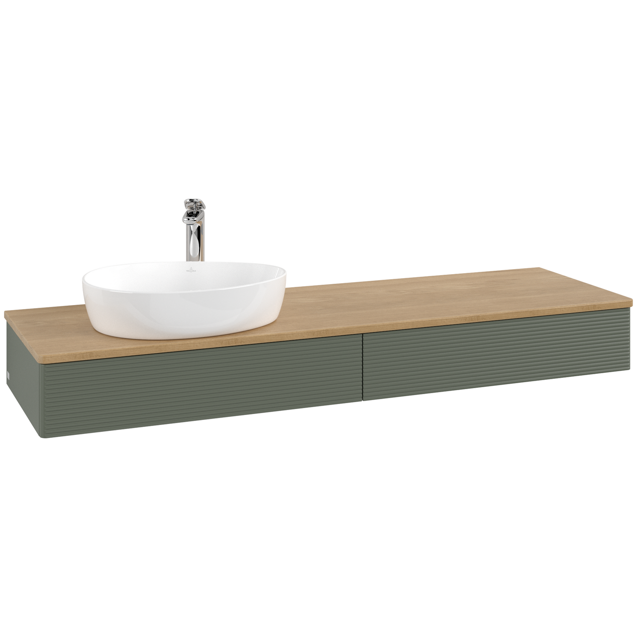 V&b antao servantskap 2 skuffer rillet 1600x190x500 venstre m/kranhull grønn/eik