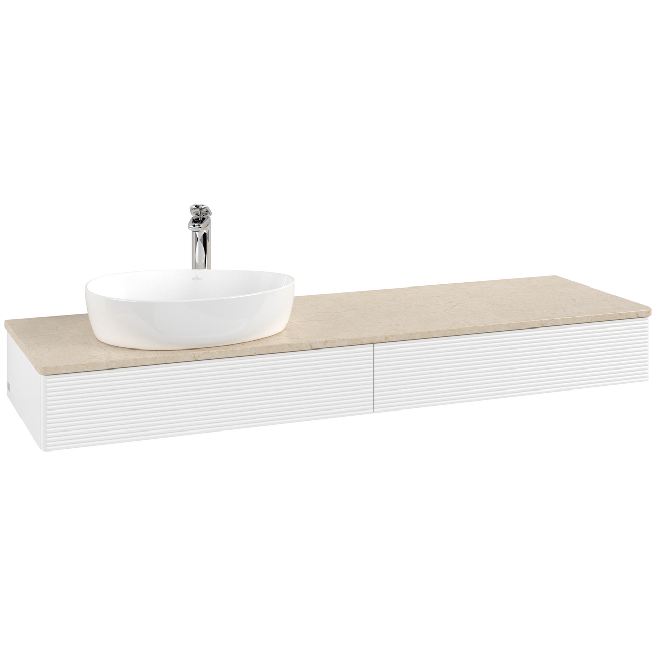 V&b antao servantskap 2 skuffer rillet 1600x190x500 venstre m/kranhull matt hvit/créme