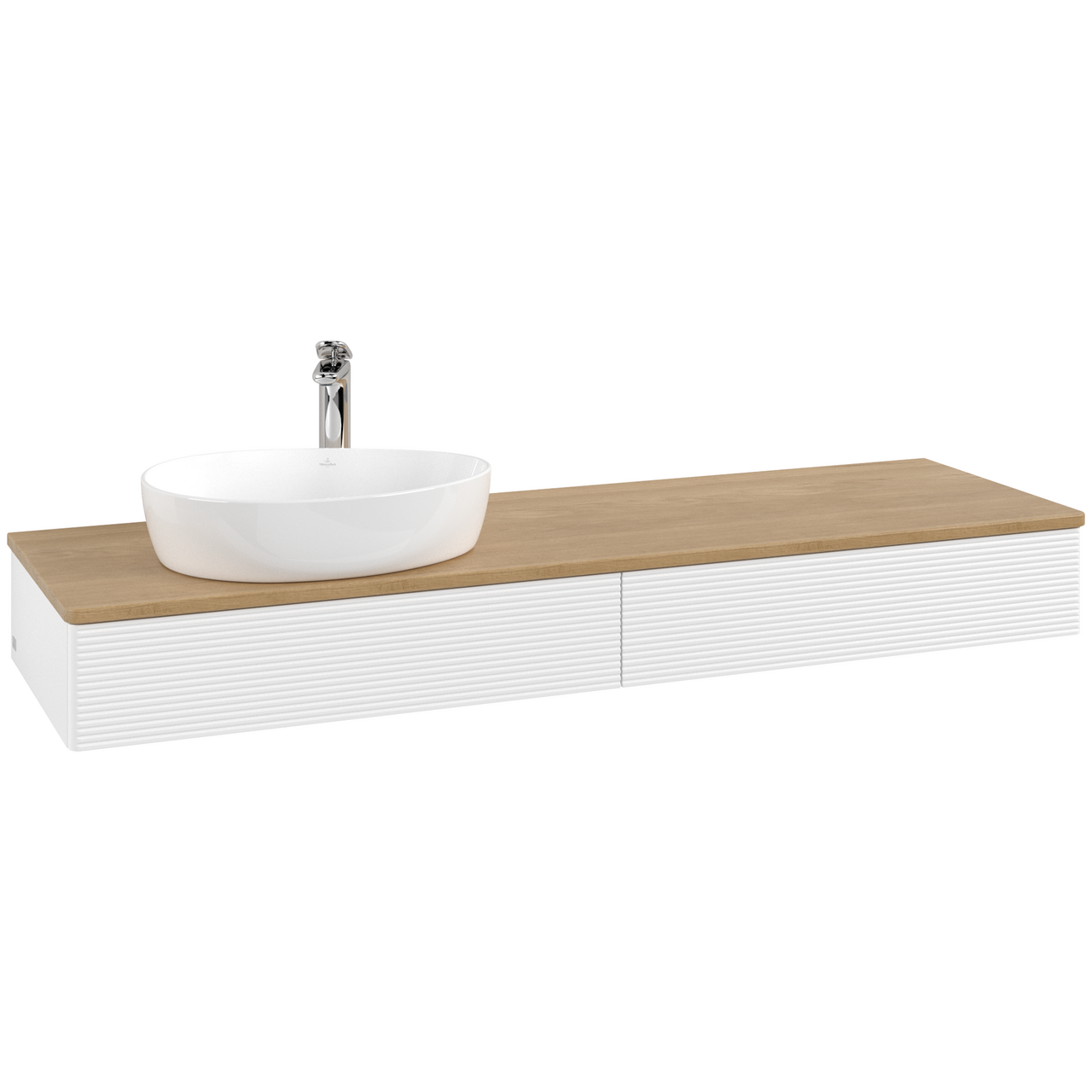 V&b antao servantskap 2 skuffer rillet 1600x190x500 venstre m/kranhull matt hvit/eik