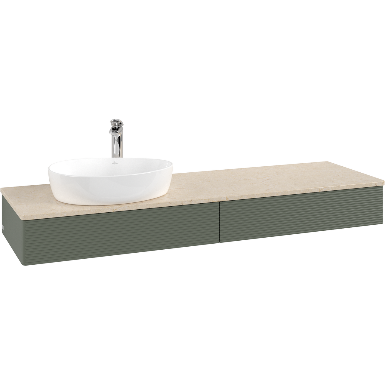 V&b antao servantskap 2 skuffer rillet 1600x190x500 venstre m/kranhull m/lys grønn/créme