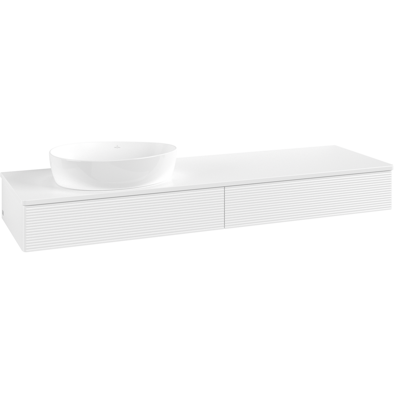 V&b antao servantskap 2 skuffer rillet 1600x190x500 venstre m/kranhull m/lys matt hvit