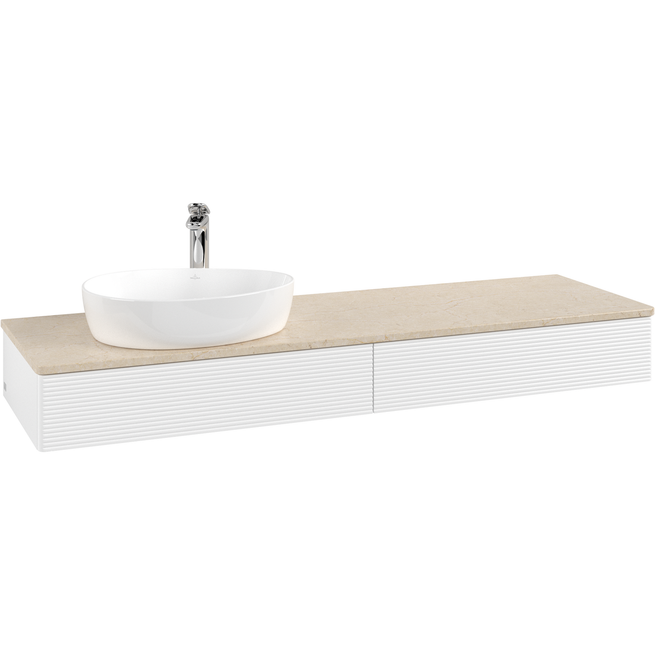 V&b antao servantskap 2 skuffer rillet 1600x190x500 venstre m/kranhull m/lys matt hvit/créme