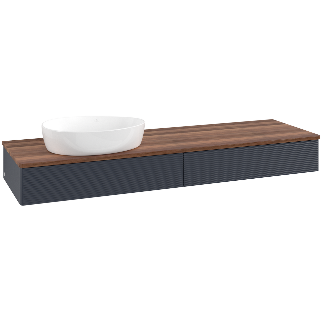 V&b antao servantskap 2 skuffer rillet 1600x190x500 venstre u/kranhull blå/valnøtt