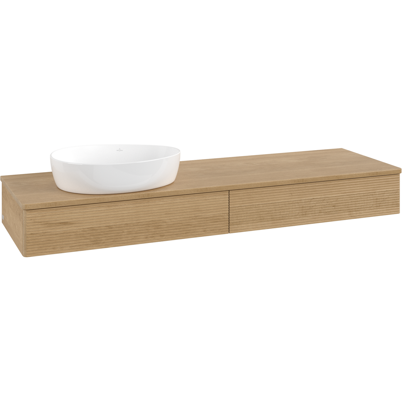 V&B ANTAO SERVANTSKAP 2 SKUFFER RILLET 1600X190X500 VENSTRE U/KRANHULL M/LYS EIK