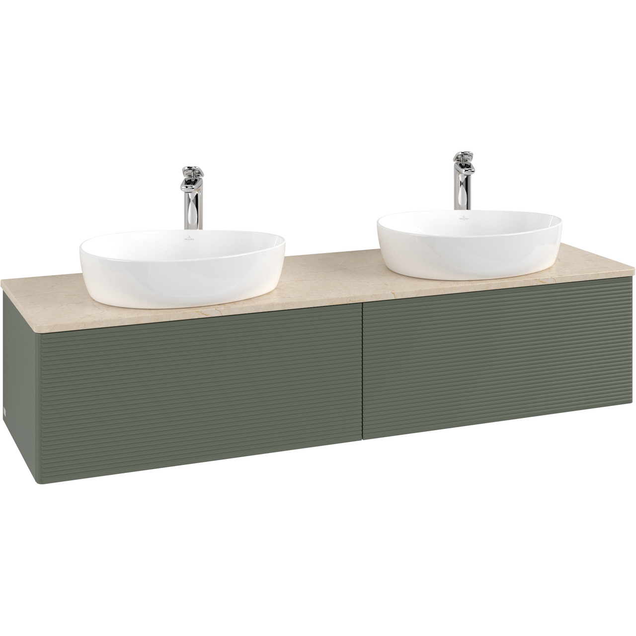 V&b antao servantskap 2 skuffer rillet 1600x360x500 for 2 serv. m/kranhull m/lys grønn/créme