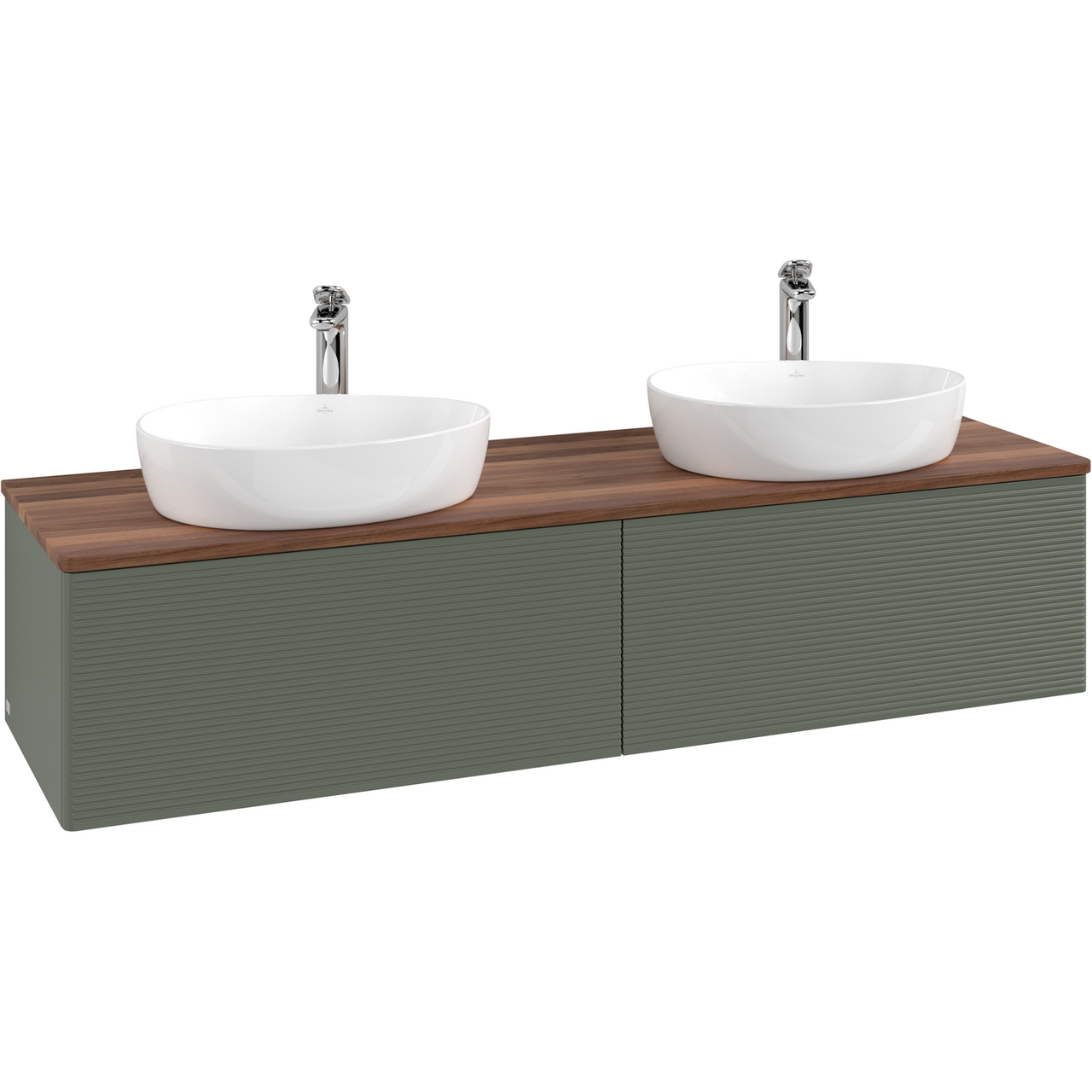 V&b antao servantskap 2 skuffer rillet 1600x360x500 for 2 serv. m/kranhull m/lys grønn/valnøtt
