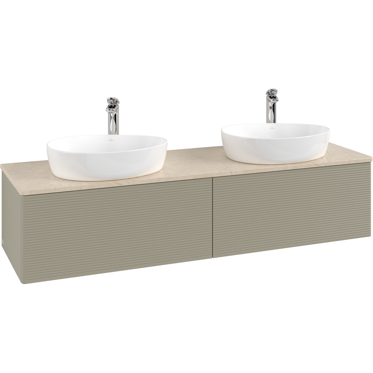 V&b antao servantskap 2 skuffer rillet 1600x360x500 for 2 serv. m/kranhull stengrå/créme