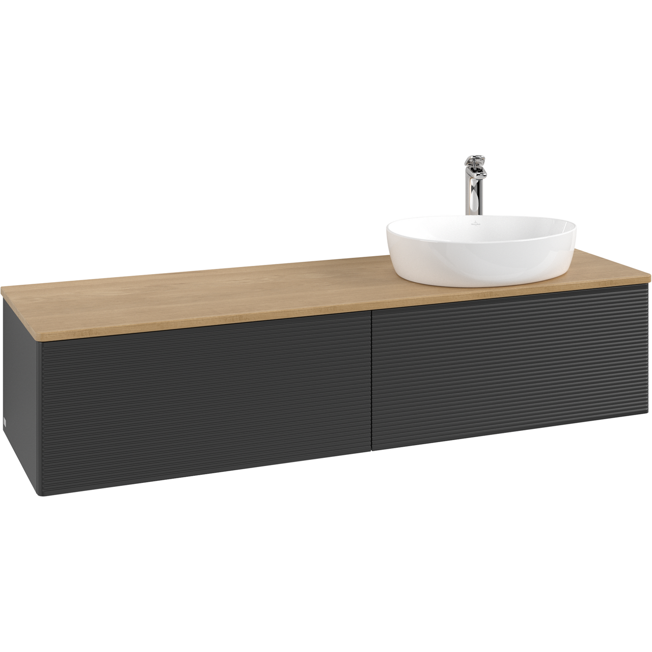 V&b antao servantskap 2 skuffer rillet 1600x360x500 høyre m/kranhull m/lys matt sort/eik