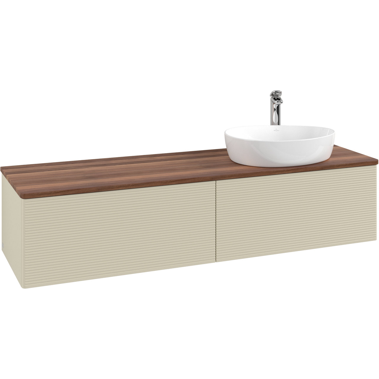 V&b antao servantskap 2 skuffer rillet 1600x360x500 høyre m/kranhull m/lys silkegrå/valnøtt
