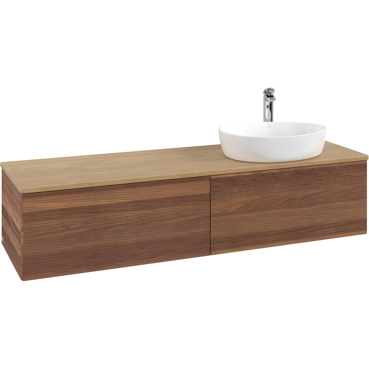 V&b antao servantskap 2 skuffer rillet 1600x360x500 høyre m/kranhull m/lys valnøtt/eik