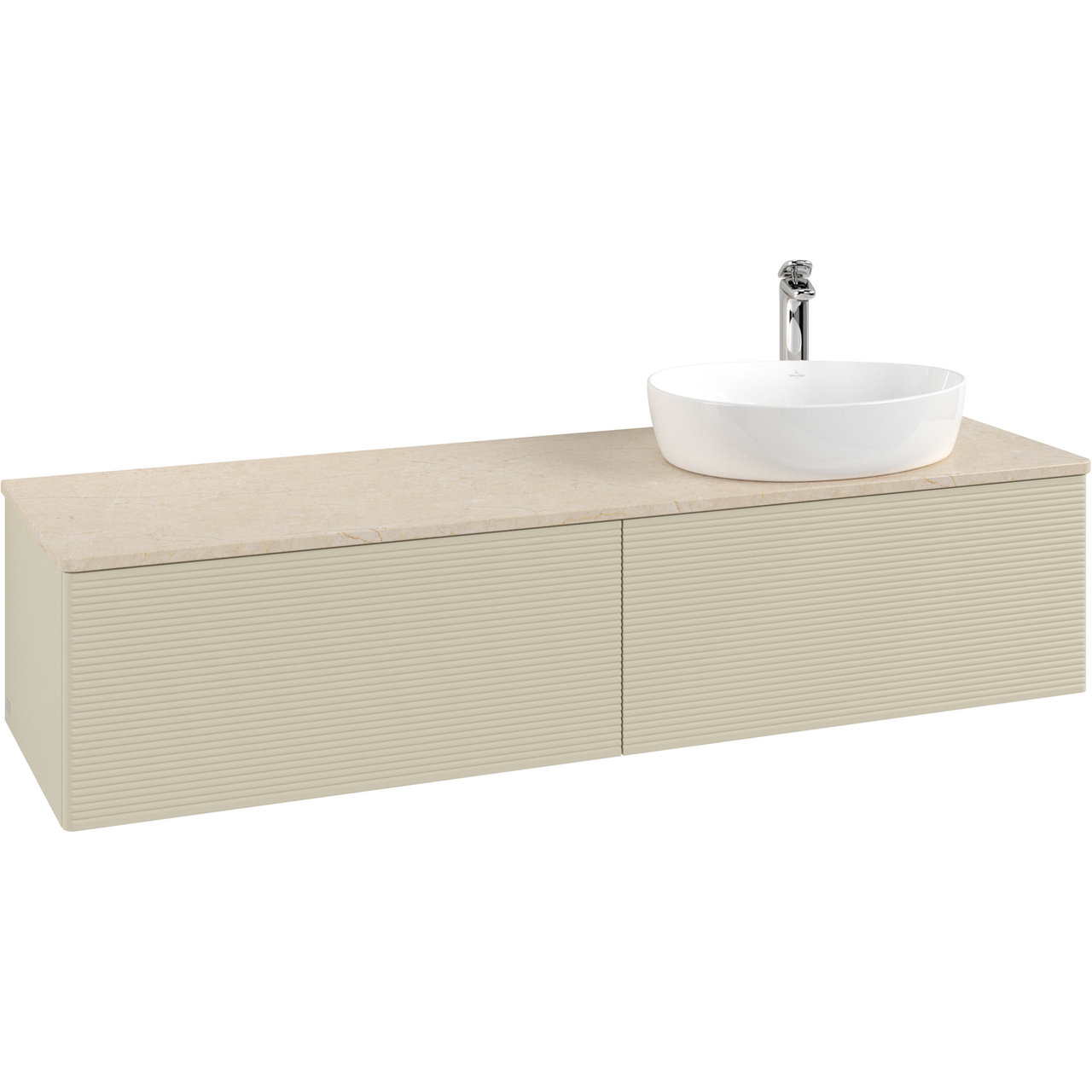 V&b antao servantskap 2 skuffer rillet 1600x360x500 høyre m/kranhull silkegrå/créme