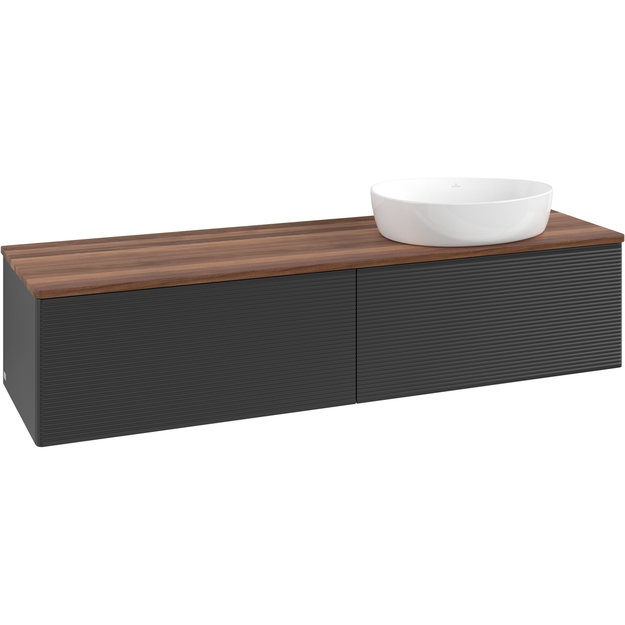 V&b antao servantskap 2 skuffer rillet 1600x360x500 høyre u/kranhull matt sort/valnøtt