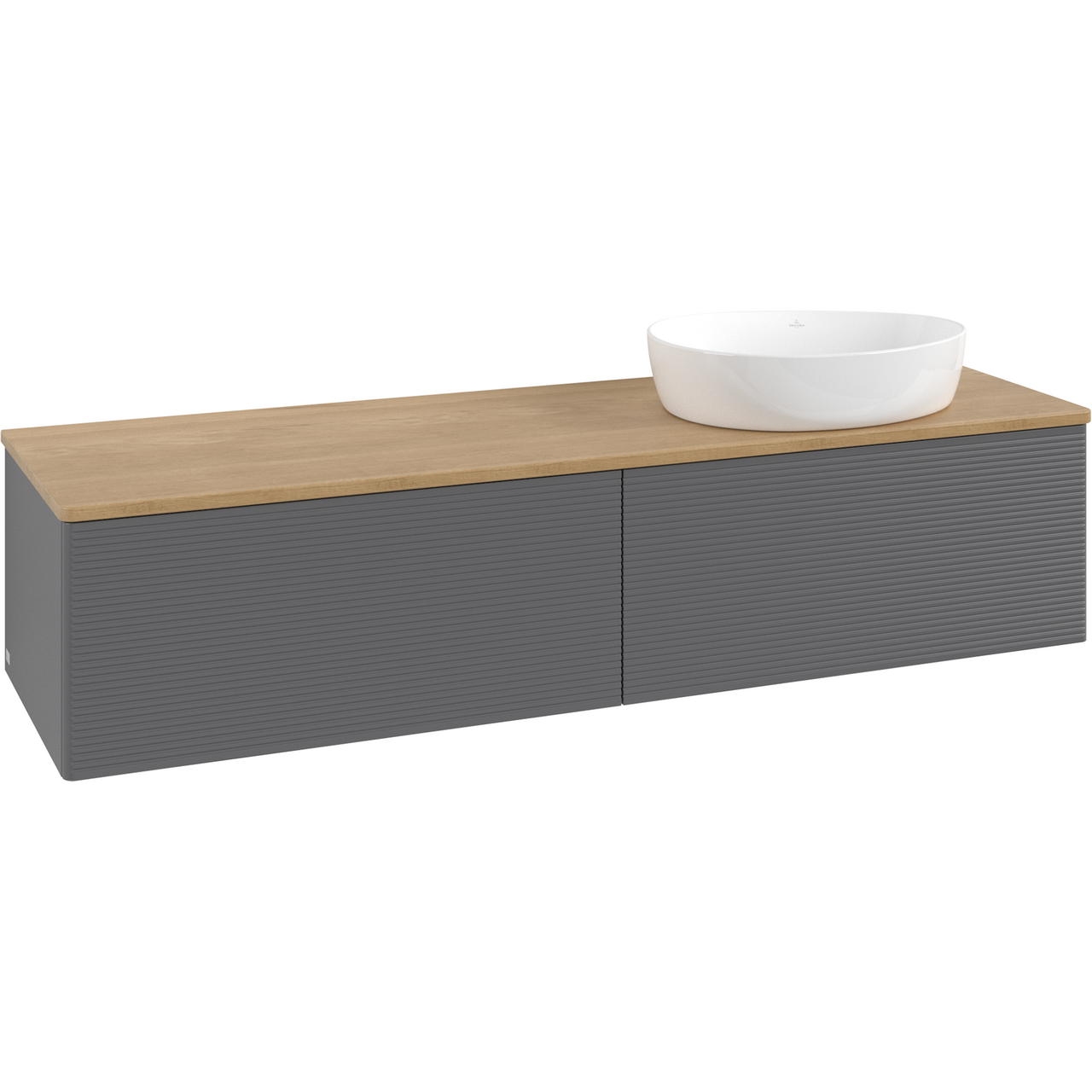 V&B ANTAO SERVANTSKAP 2 SKUFFER RILLET 1600X360X500 HØYRE U/KRANHULL M/LYS ANTRASITT/EIK