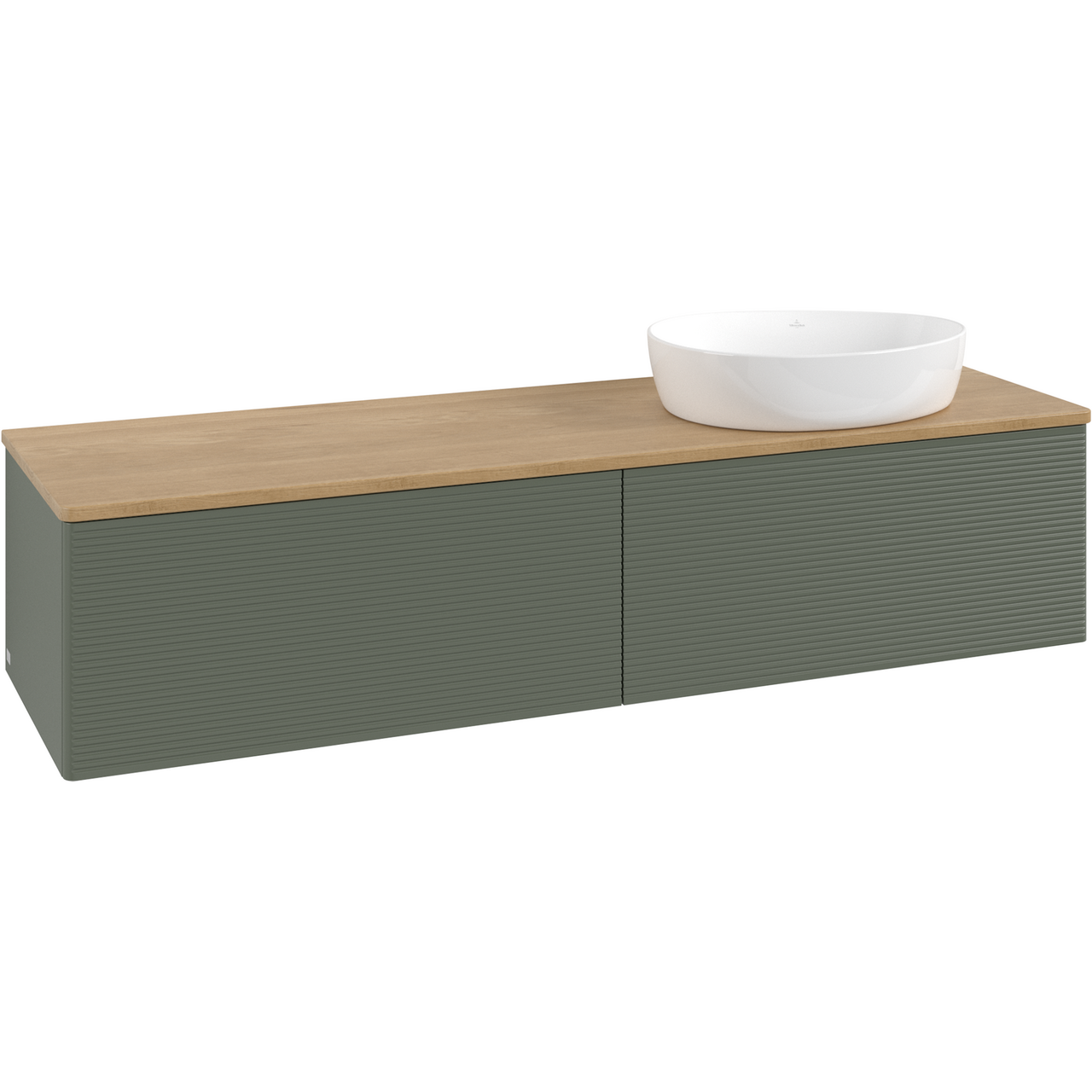 V&b antao servantskap 2 skuffer rillet 1600x360x500 høyre u/kranhull m/lys grønn/eik