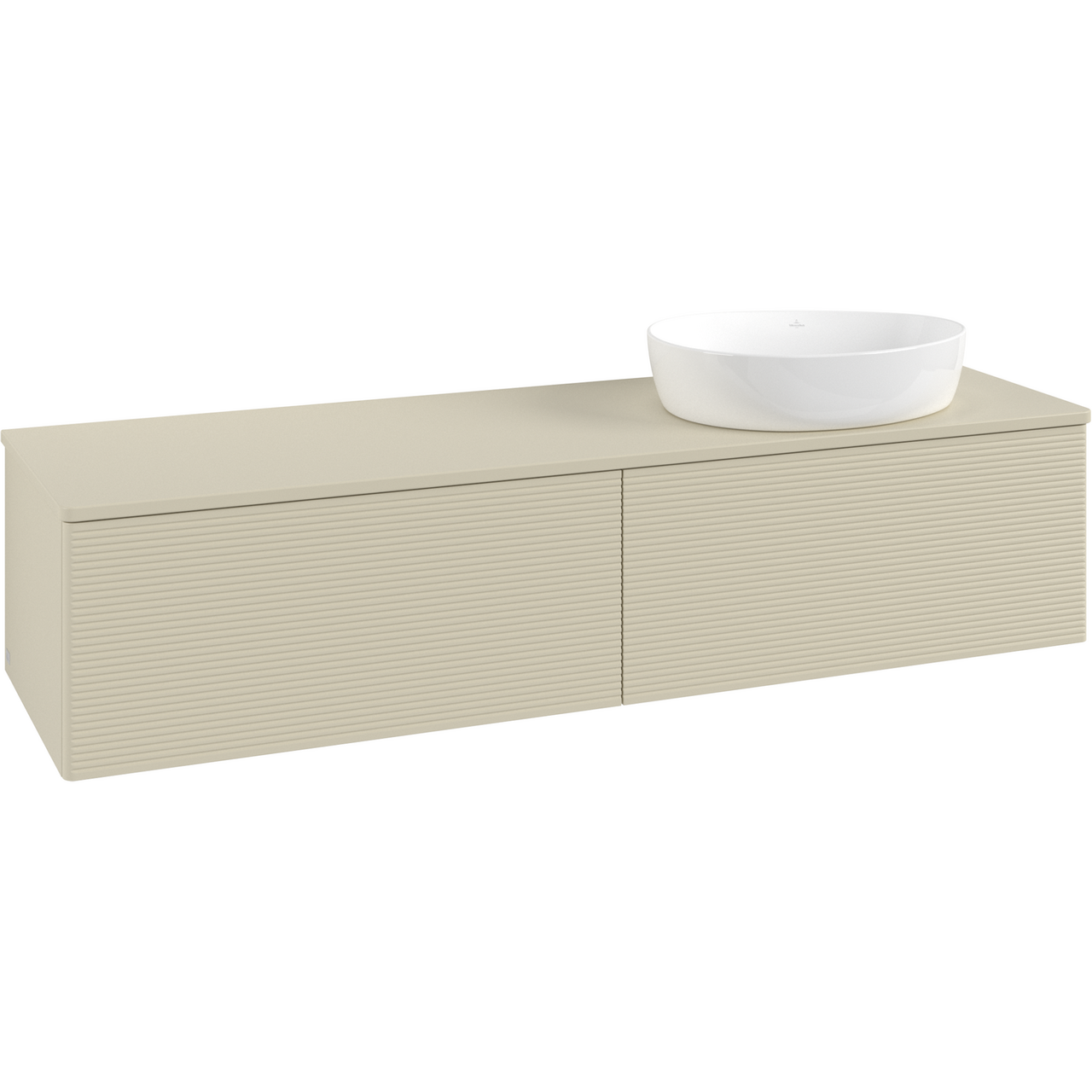 V&b antao servantskap 2 skuffer rillet 1600x360x500 høyre u/kranhull m/lys silkegrå