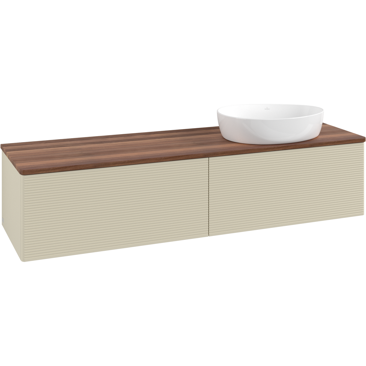 V&b antao servantskap 2 skuffer rillet 1600x360x500 høyre u/kranhull silkegrå/valnøtt