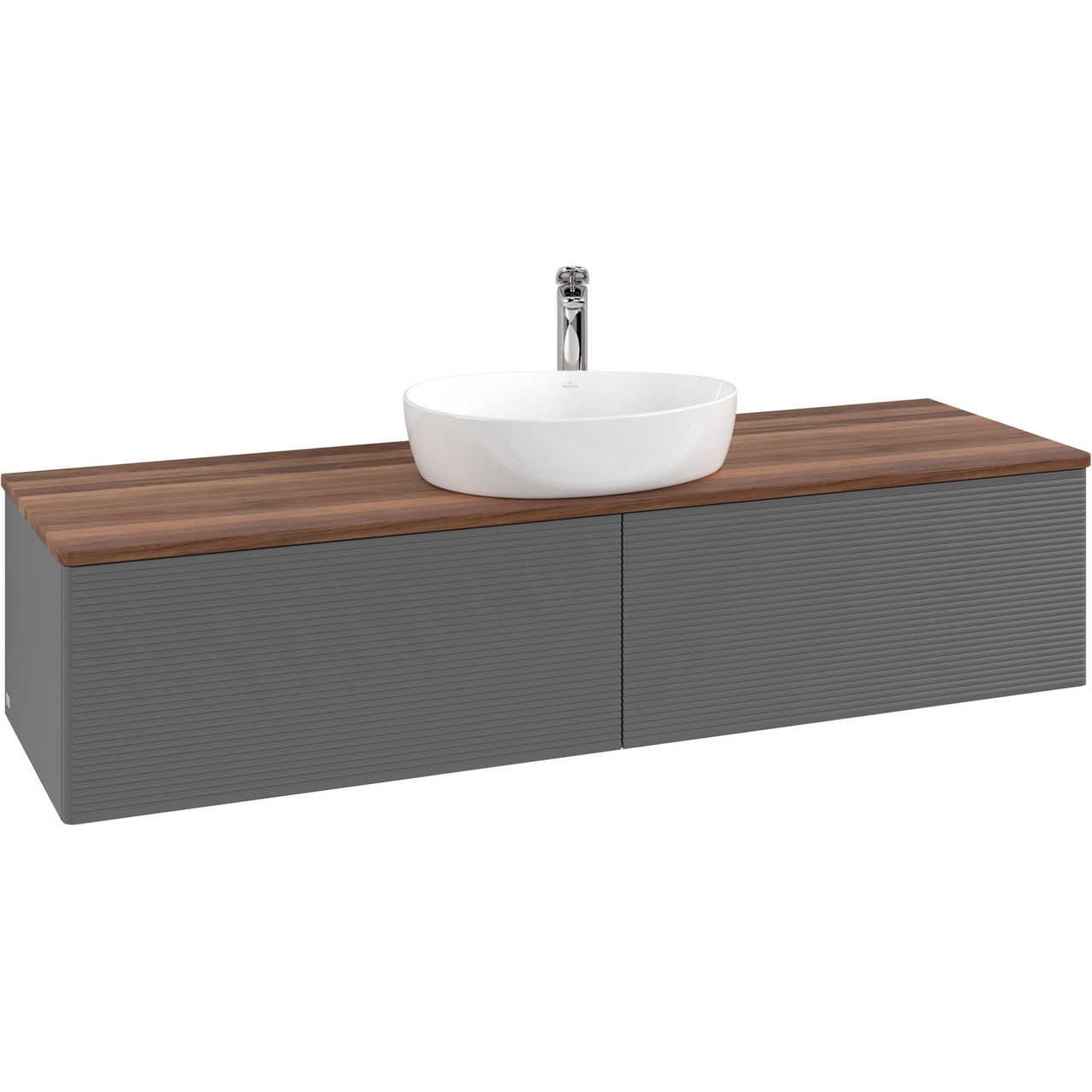 V&b antao servantskap 2 skuffer rillet 1600x360x500 m/kranhull m/lys antrasitt/valnøtt