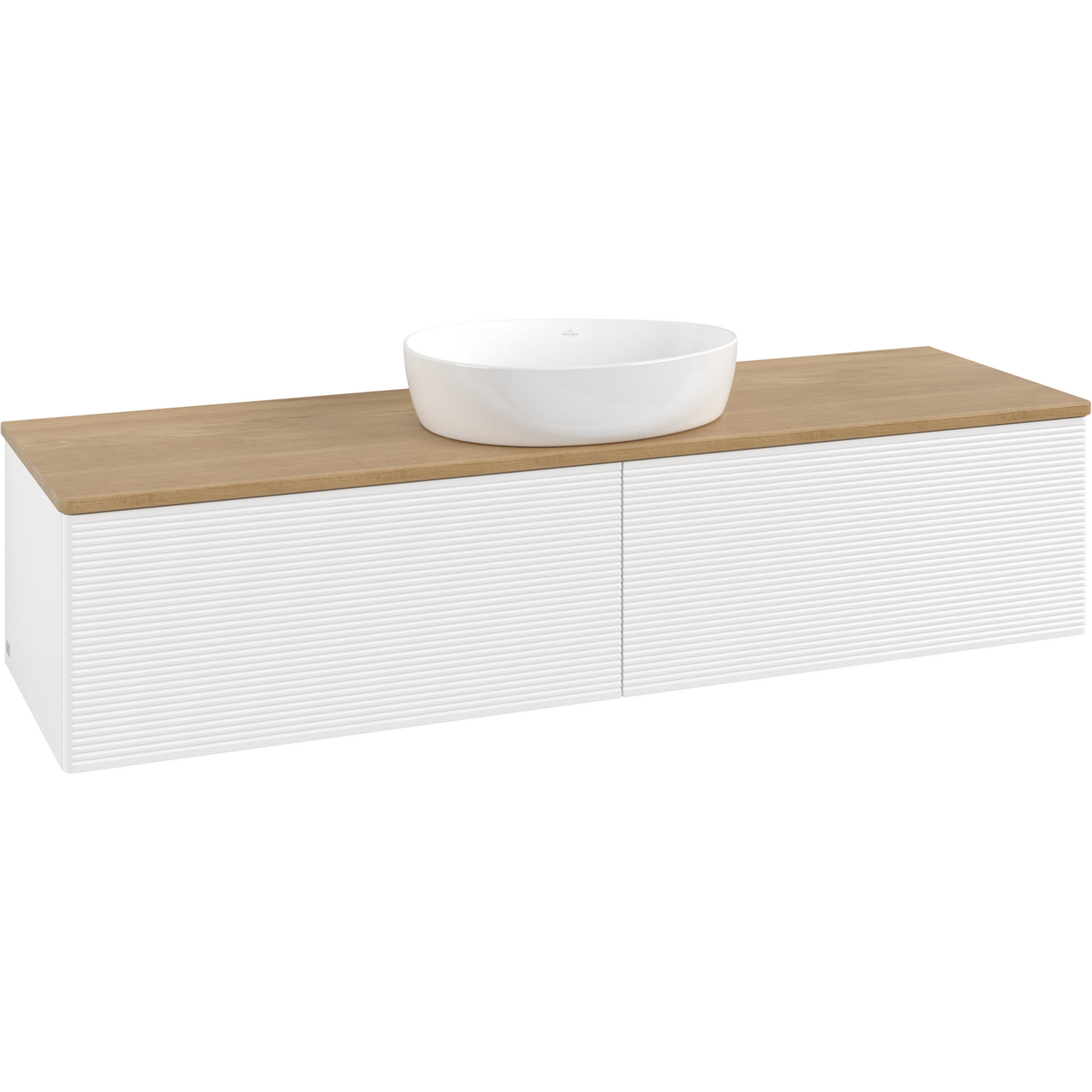 V&b antao servantskap 2 skuffer rillet 1600x360x500 u/kranhull m/lys matt hvit/eik
