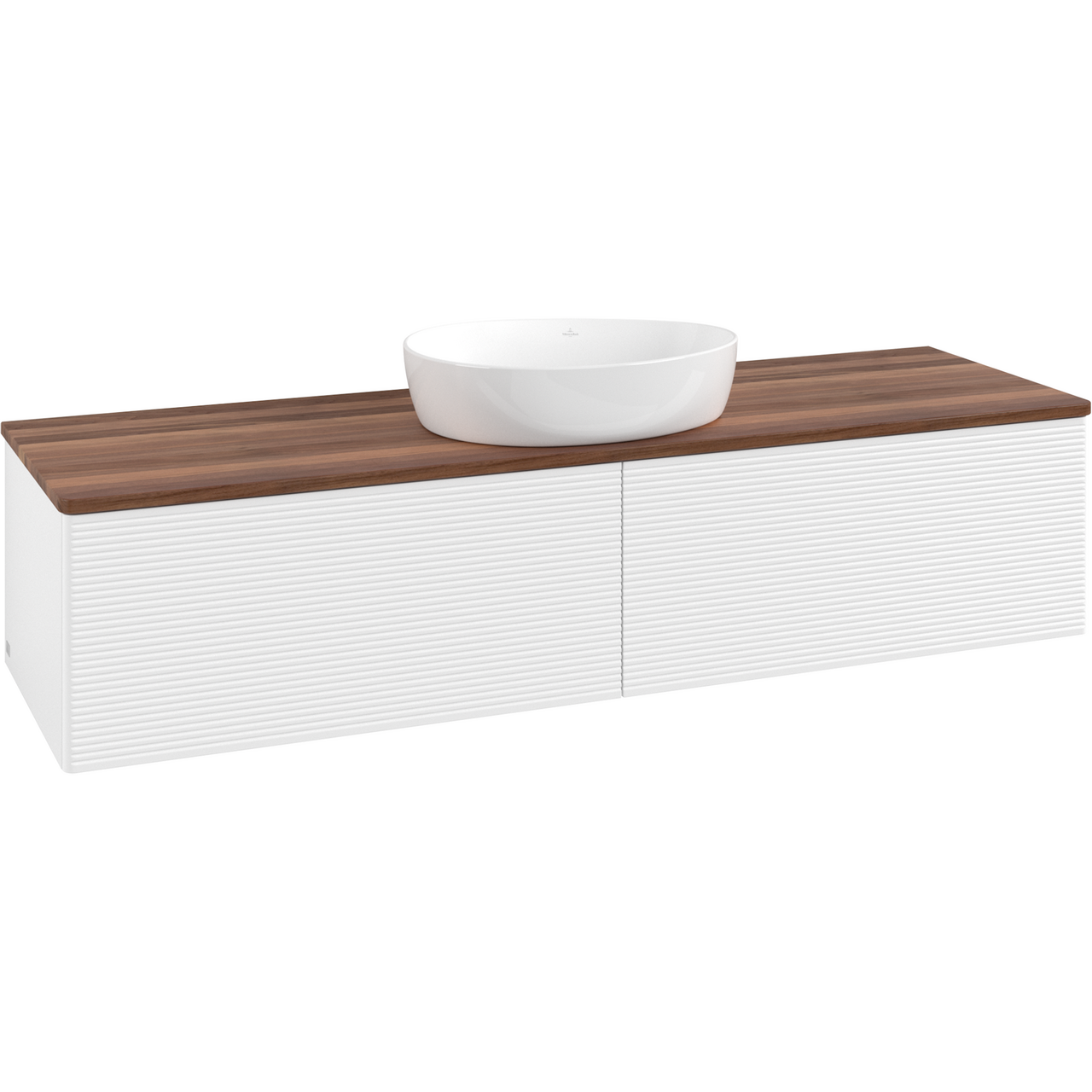 V&b antao servantskap 2 skuffer rillet 1600x360x500 u/kranhull m/lys matt hvit/valnøtt