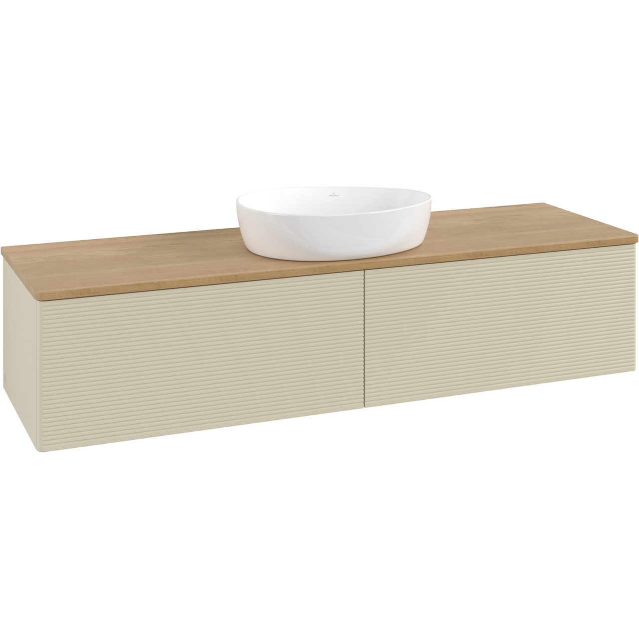 V&b antao servantskap 2 skuffer rillet 1600x360x500 u/kranhull silkegrå/eik