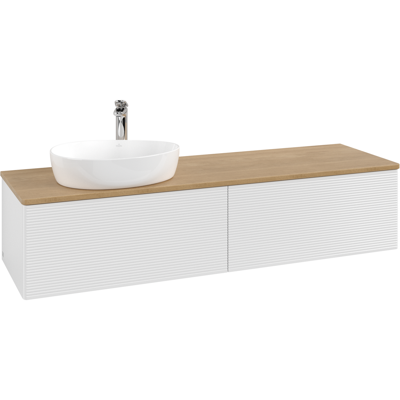 V&b antao servantskap 2 skuffer rillet 1600x360x500 venstre m/kranhull m/lys hvit/eik