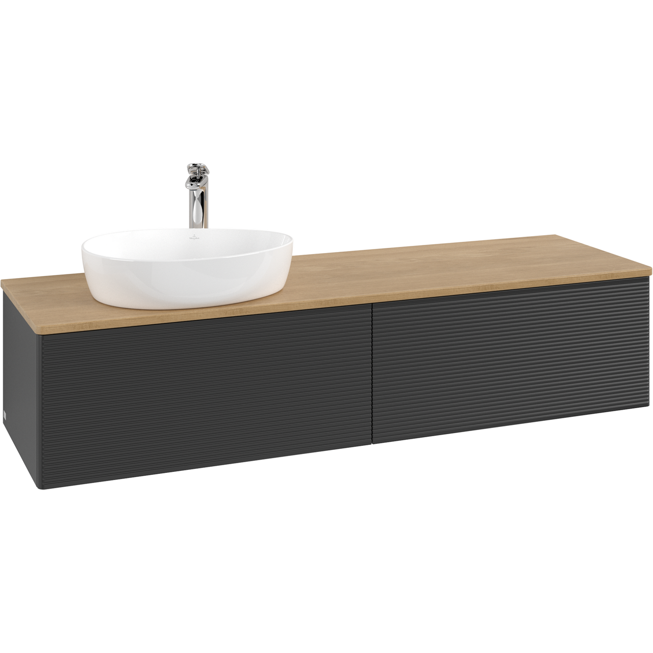 V&b antao servantskap 2 skuffer rillet 1600x360x500 venstre m/kranhull m/lys matt sort/eik