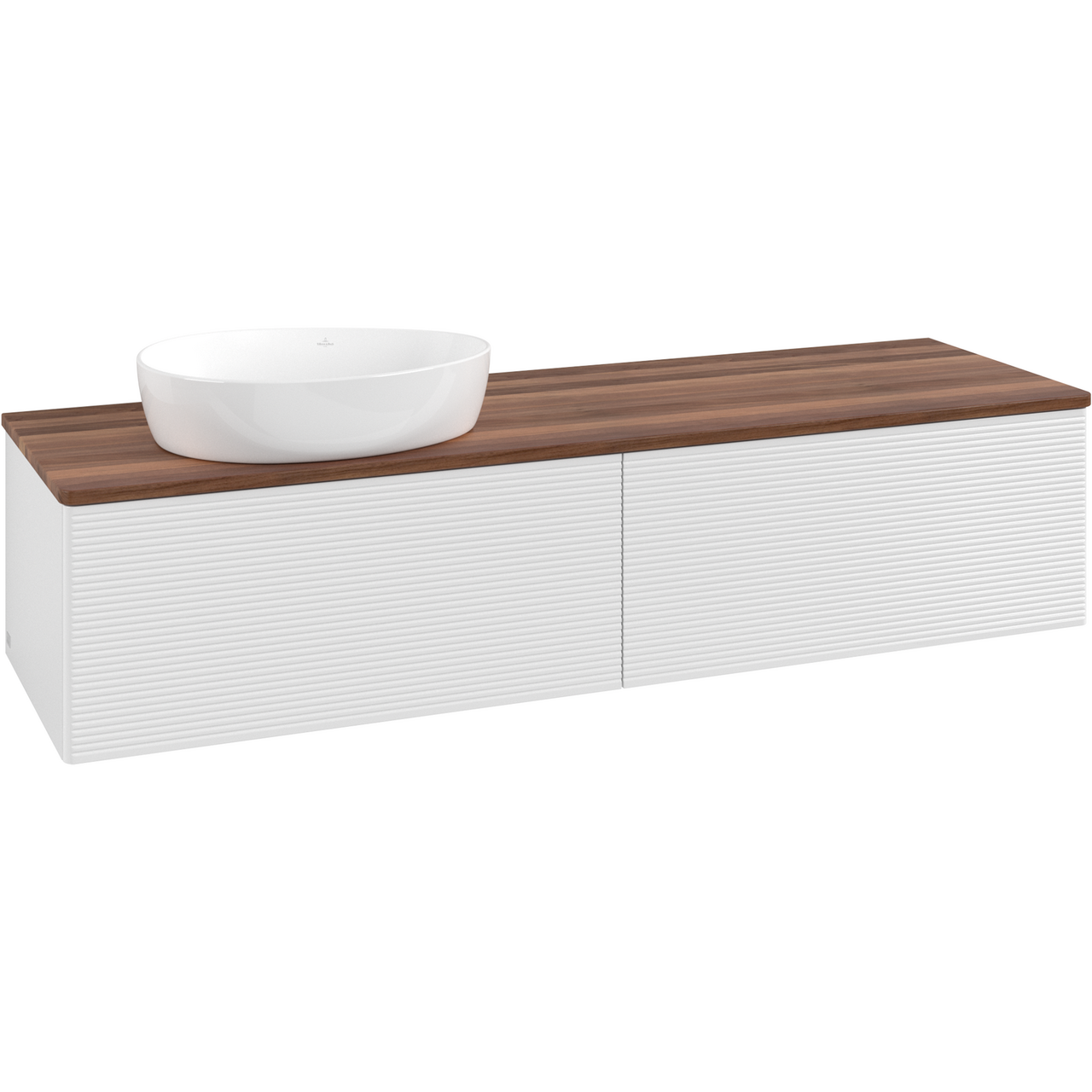 V&b antao servantskap 2 skuffer rillet 1600x360x500 venstre u/kranhull hvit/valnøtt