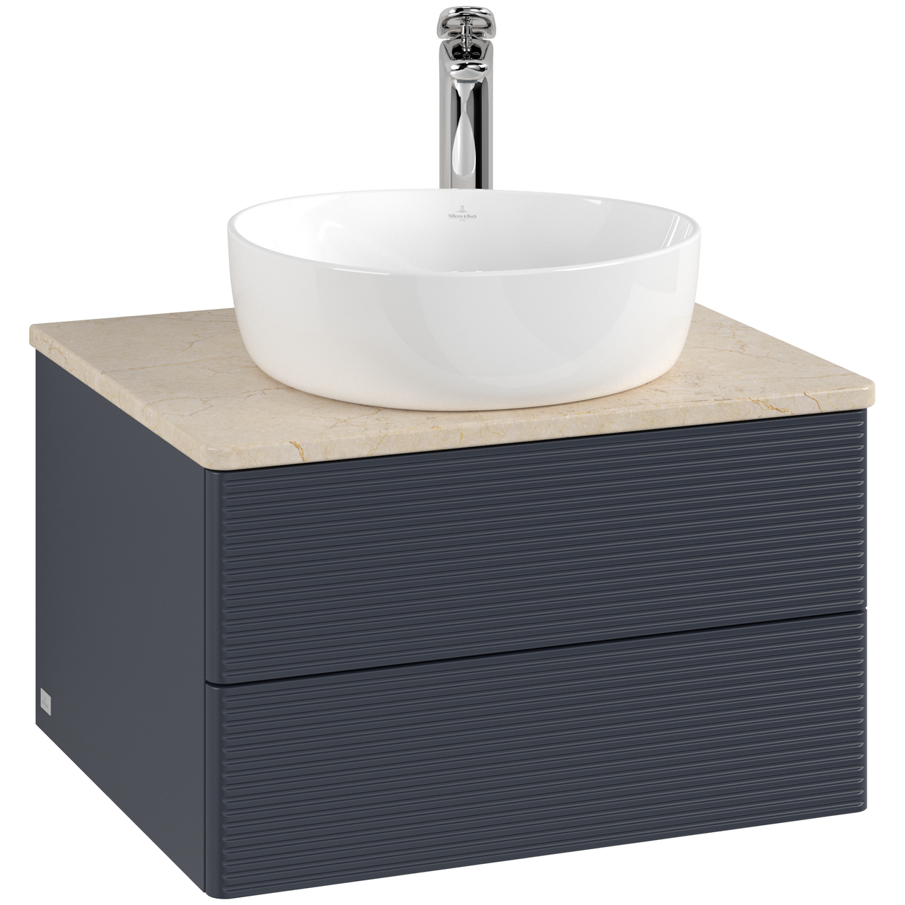 V&b antao servantskap 2 skuffer rillet 600x360x500 m/kranhull blå/créme