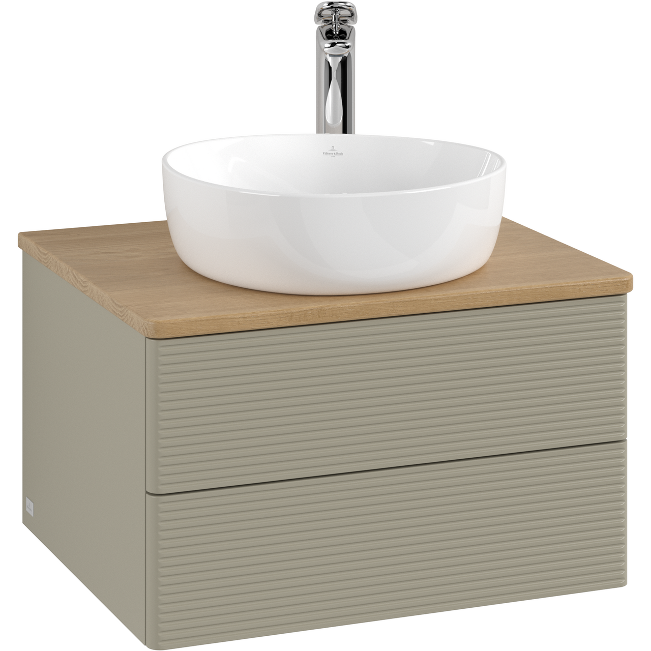 V&b antao servantskap 2 skuffer rillet 600x360x500 m/kranhull m/lys stengrå/eik