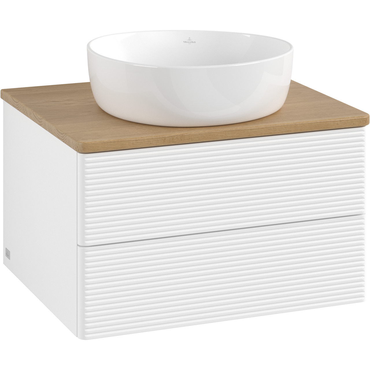 V&b antao servantskap 2 skuffer rillet 600x360x500 u/kranhull m/lys matt hvit/eik