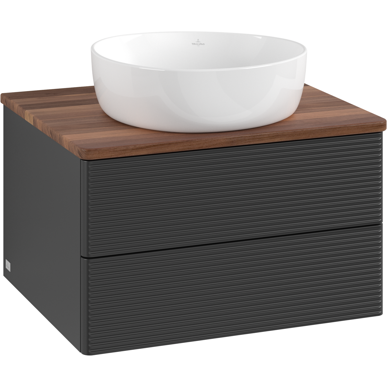 V&b antao servantskap 2 skuffer rillet 600x360x500 u/kranhull m/lys matt sort/valnøtt
