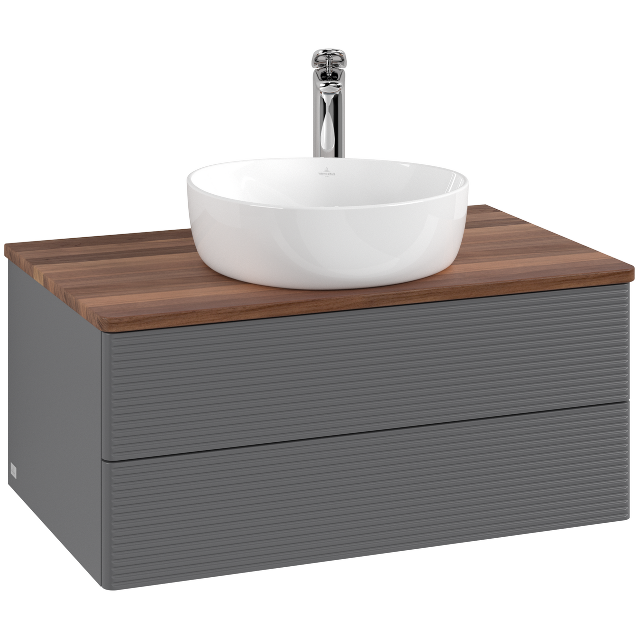 V&B ANTAO SERVANTSKAP 2 SKUFFER RILLET 800X360X500 M/KRANHULL ANTRASITT/VALNØTT