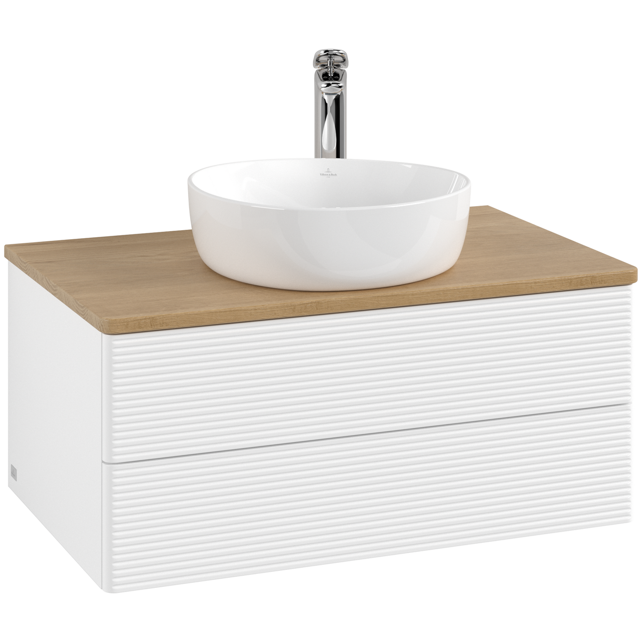 V&B ANTAO SERVANTSKAP 2 SKUFFER RILLET 800X360X500 M/KRANHULL MATT HVIT/EIK