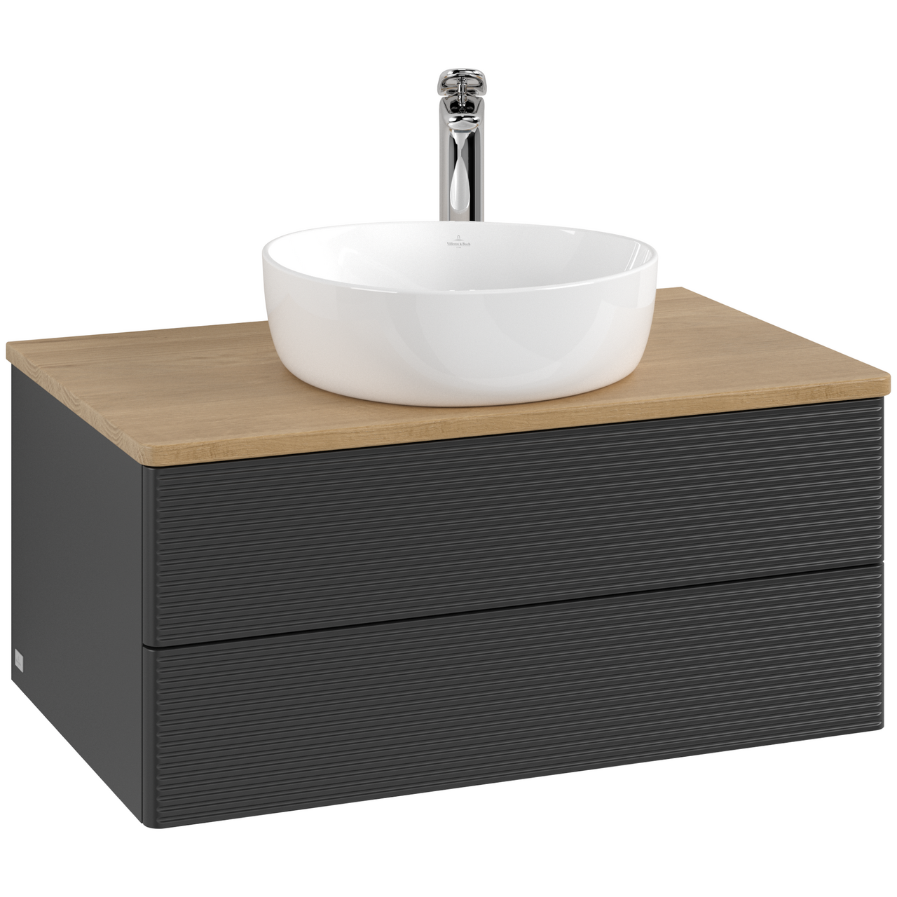 V&B ANTAO SERVANTSKAP 2 SKUFFER RILLET 800X360X500 M/KRANHULL MATT SORT/EIK