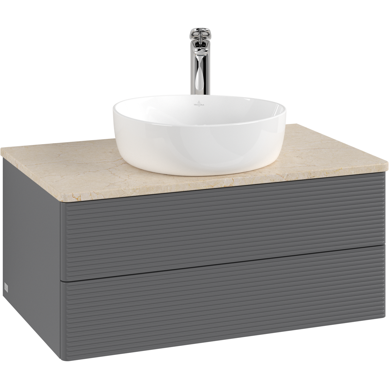 V&B ANTAO SERVANTSKAP 2 SKUFFER RILLET 800X360X500 M/KRANHULL M/LYS ANTRASITT/CRÉME