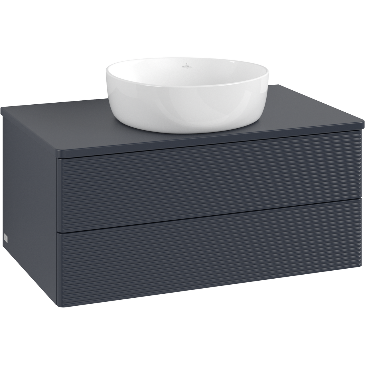 V&b antao servantskap 2 skuffer rillet 800x360x500 m/kranhull m/lys blå