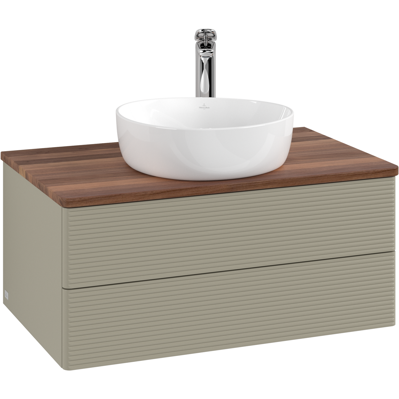 V&b antao servantskap 2 skuffer rillet 800x360x500 m/kranhull m/lys stengrå/valnøtt