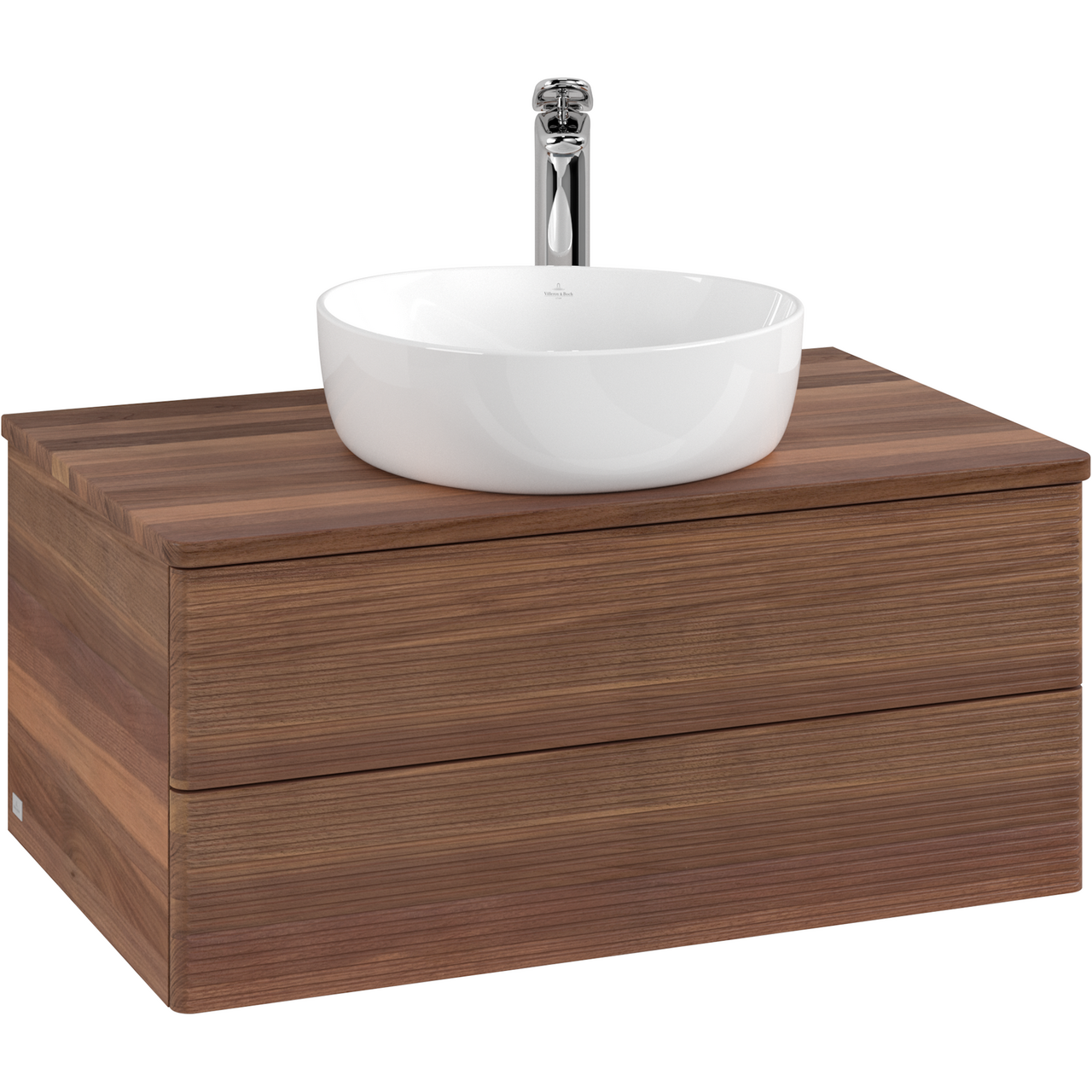 V&b antao servantskap 2 skuffer rillet 800x360x500 m/kranhull m/lys valnøtt/valnøtt