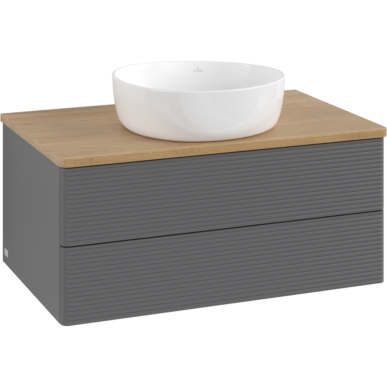 V&b antao servantskap 2 skuffer rillet 800x360x500 u/kranhull m/lys antrasitt/eik