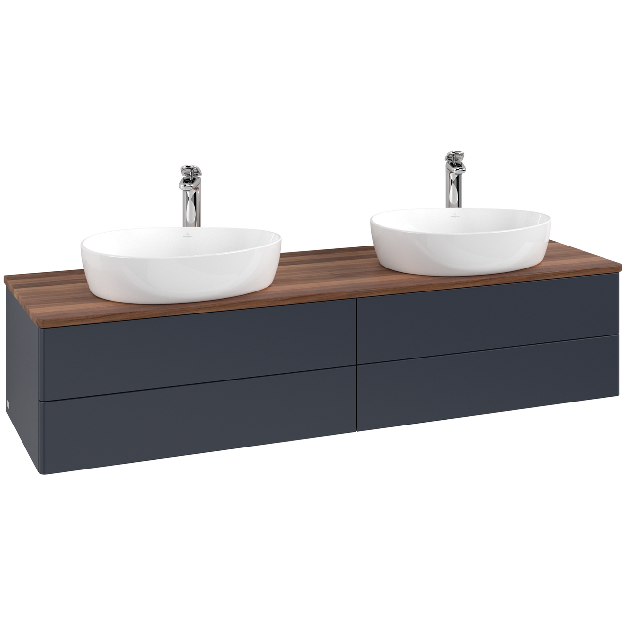 V&b antao servantskap 4 skuffer glatt 1600x360x500 for 2 serv. m/kranhull blå/valnøtt