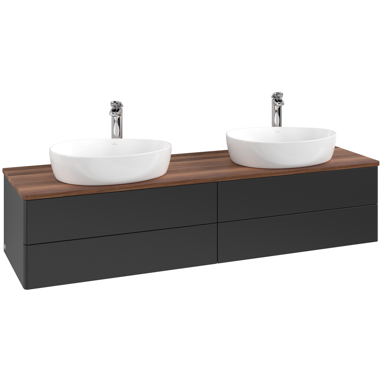V&b antao servantskap 4 skuffer glatt 1600x360x500 for 2 serv. m/kranhull matt sort/valnøtt