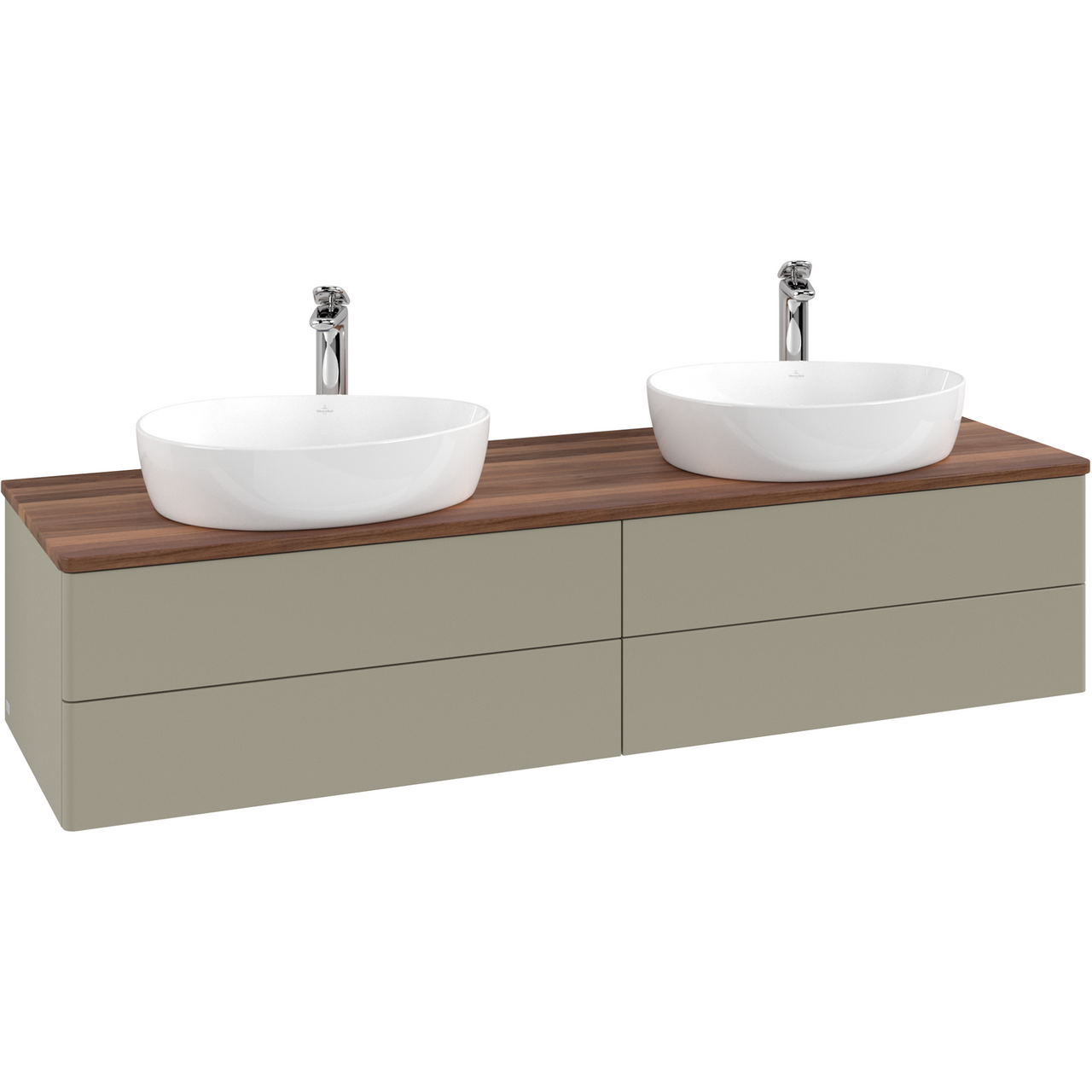 V&b antao servantskap 4 skuffer glatt 1600x360x500 for 2 serv. m/kranhull m/lys stengrå/valnøtt