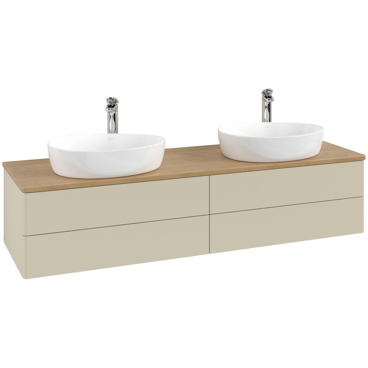 V&b antao servantskap 4 skuffer glatt 1600x360x500 for 2 serv. m/kranhull silkegrå/eik